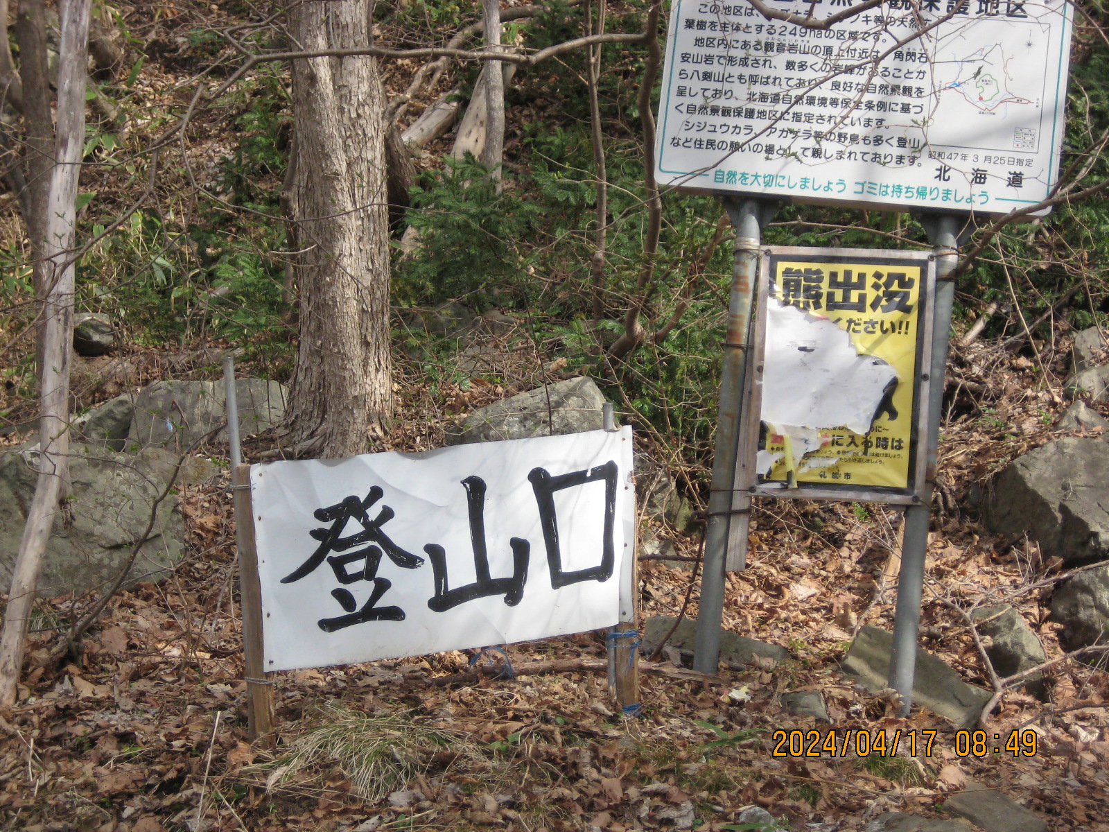 八剣山 登山開始8時48分 登頂9時20分 下山10時。 今日は車が10台でたーくさんの登山者さんでしたよ。 写真のコブシやヒトリシズカなど今日初めての顔ぶれは結構感激したかもでーすね。 40年前からの登山靴も久しぶりに引っ張り出して履きましたが足にフィットして快適でした。 看板もあれこれと修繕設置したいと思っています。