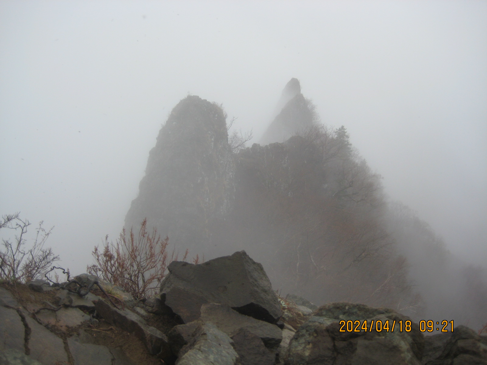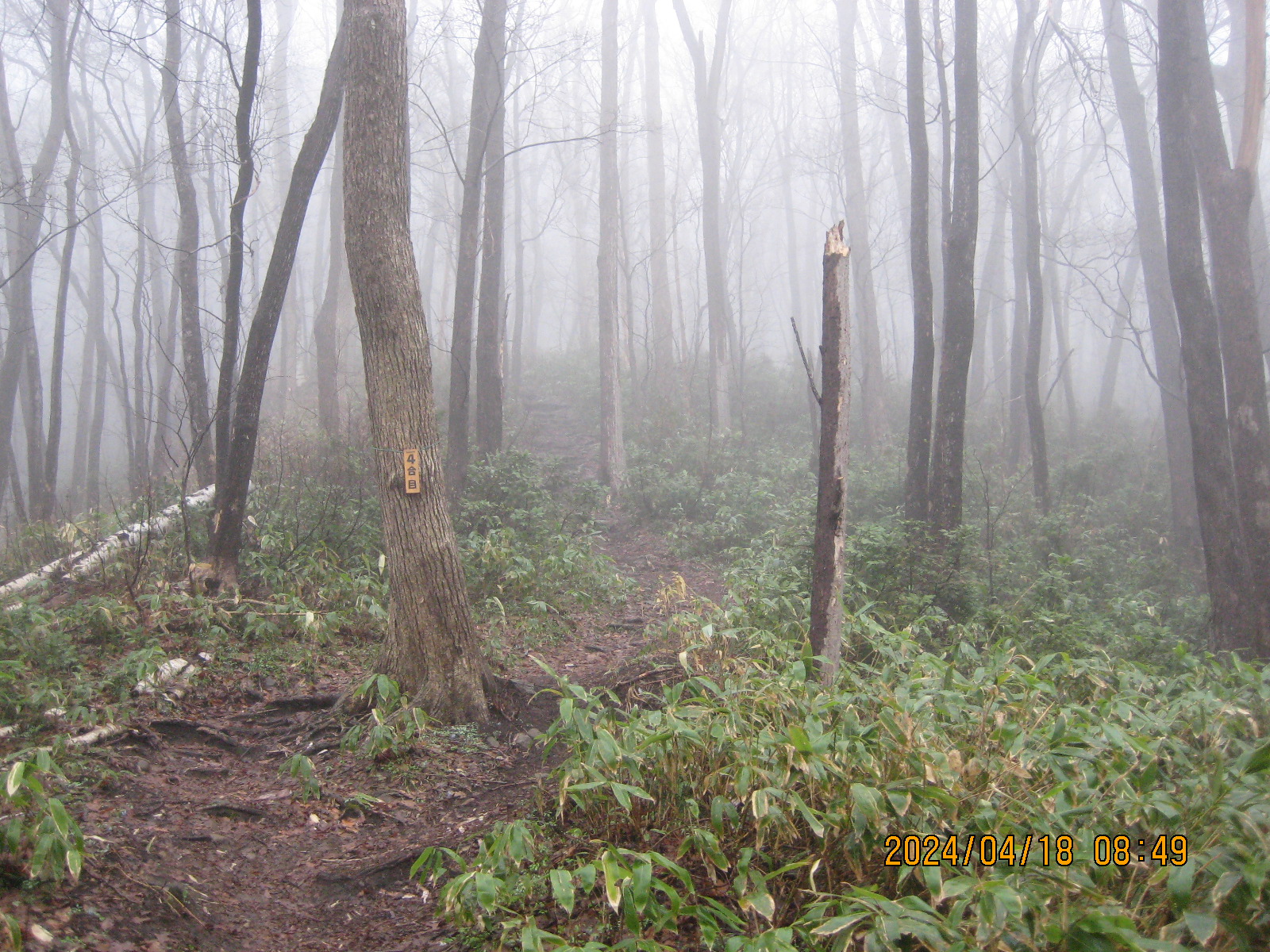 八剣山 登山開始8市38分 登頂9時20分 下山9時46分。 雨だったので4合目辺りから雲の中をデンデン虫を踏みつけない様に登山です。 頂上では足元から真っ白けで遠くは全く見えませんでしたね。 写真の看板3枚は外れたり壊れたりしていたのをベニヤ板で補強して定位置に取り付けしました。