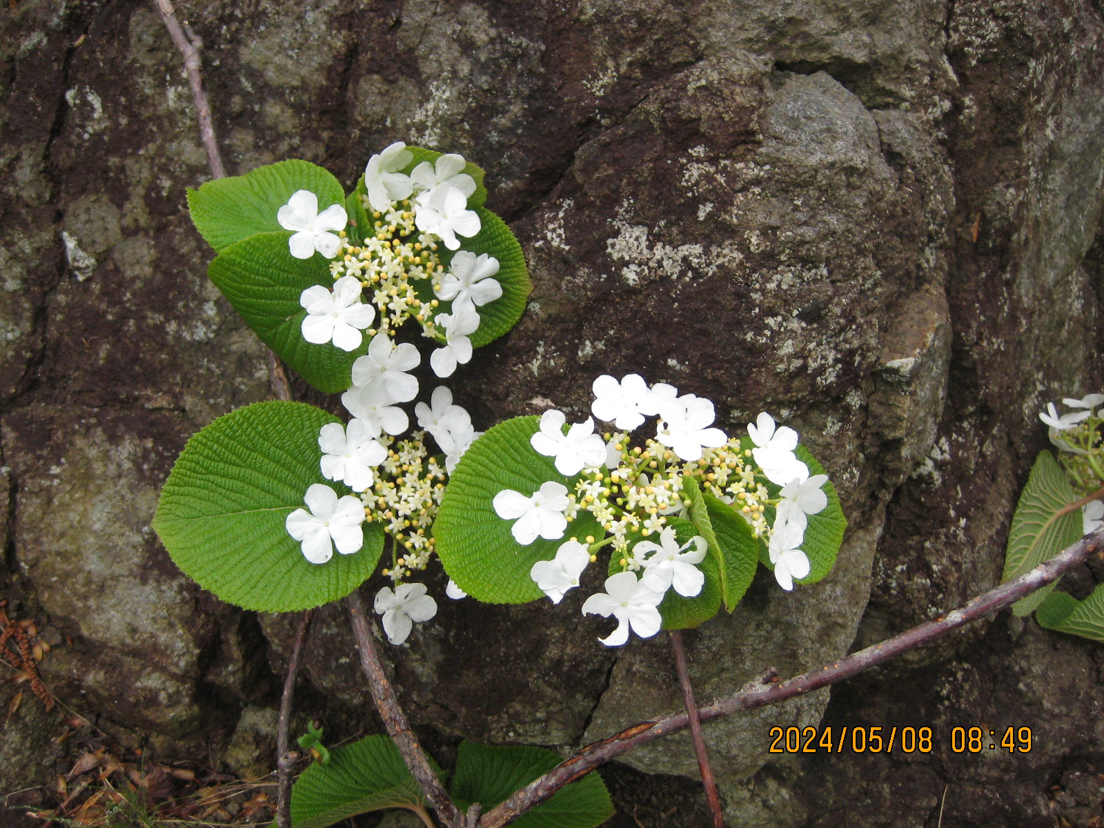八剣山 登山開始8時8分 登頂8時40分 下山9時10分。 2日間シトシトと雨が降っていましたがようやく収まったかなという感じ。 登山道はジメジメしていて暗ーい八剣山。 昨日の白い花をしっかり研究したところ、多分ですが「オオカメノキ」ではないでしょうか。 それと、写真のタランボですがこの3年位前からタランボをぽっきんと折って採るのでなくチョッキンと切ってるんです。 マナー良くないですね。