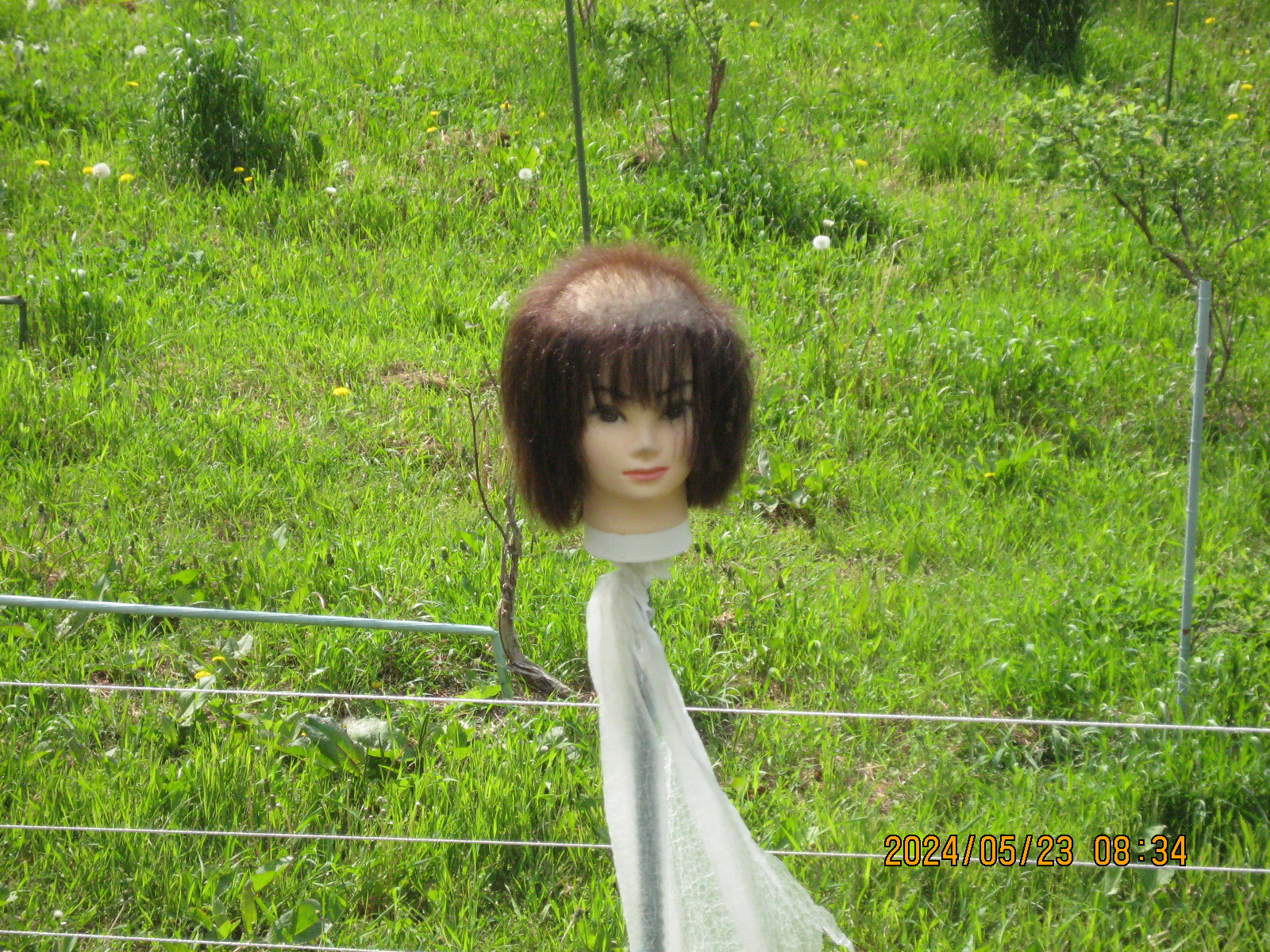 八剣山 登山開始8時45分 登頂9時24分 下山10時24分。 写真の新兵器をネットで購入、心強い味方が出来ました。 登り口の果樹園さんに美人のお人形さんが、頭の毛をカラスの巣作りに使われちゃって何とも気の毒な事に。 夜に近くを通るのはちと気味悪いかも。 八剣山の頂上がポカポカなのでくつろいでいると、ぢゅんさんとitoさんが来られておしゃべりを。