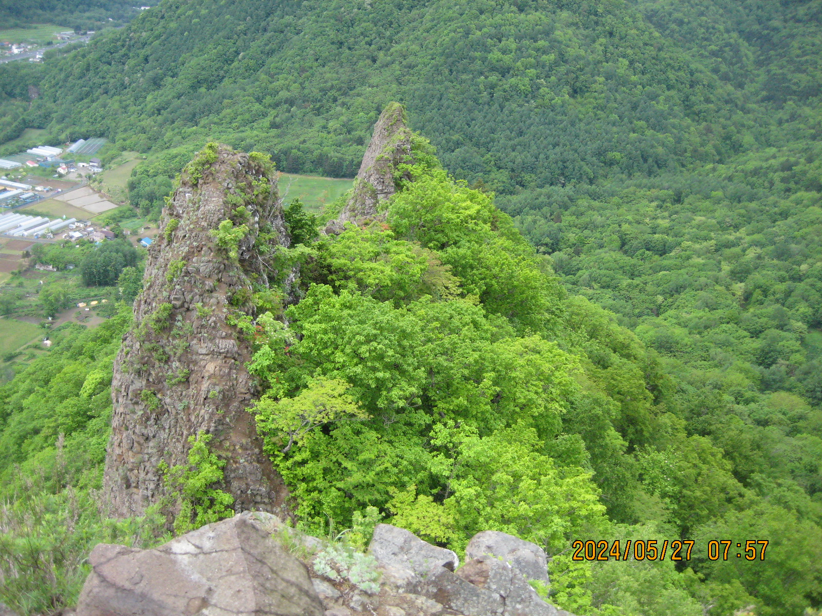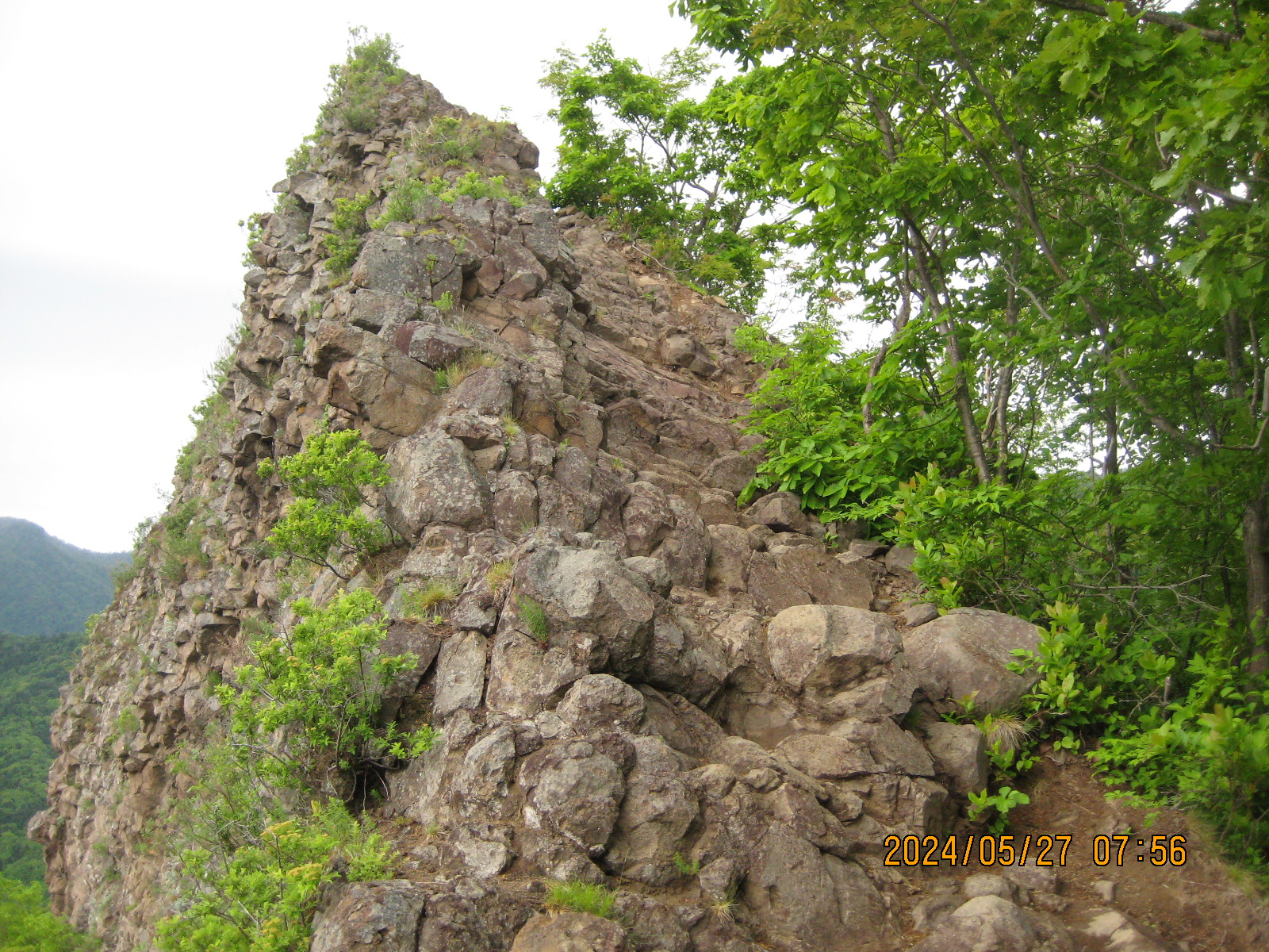 八剣山 登山開始7時18分 登頂7時57分 下山8時23分。 朝からずーっと傘マークで降水確率80%なんだけど傘なしで登ってみたんです。 お陰様で霧雨も無く濡れないで下りて来られました。 写真ですが鎖の留め金が緩み始めましたよ。 昨日も100人程の方が鎖を下から引っ張っているので廻り始めても無理は有りませんね。 明日にでも直さなきゃ危険です。