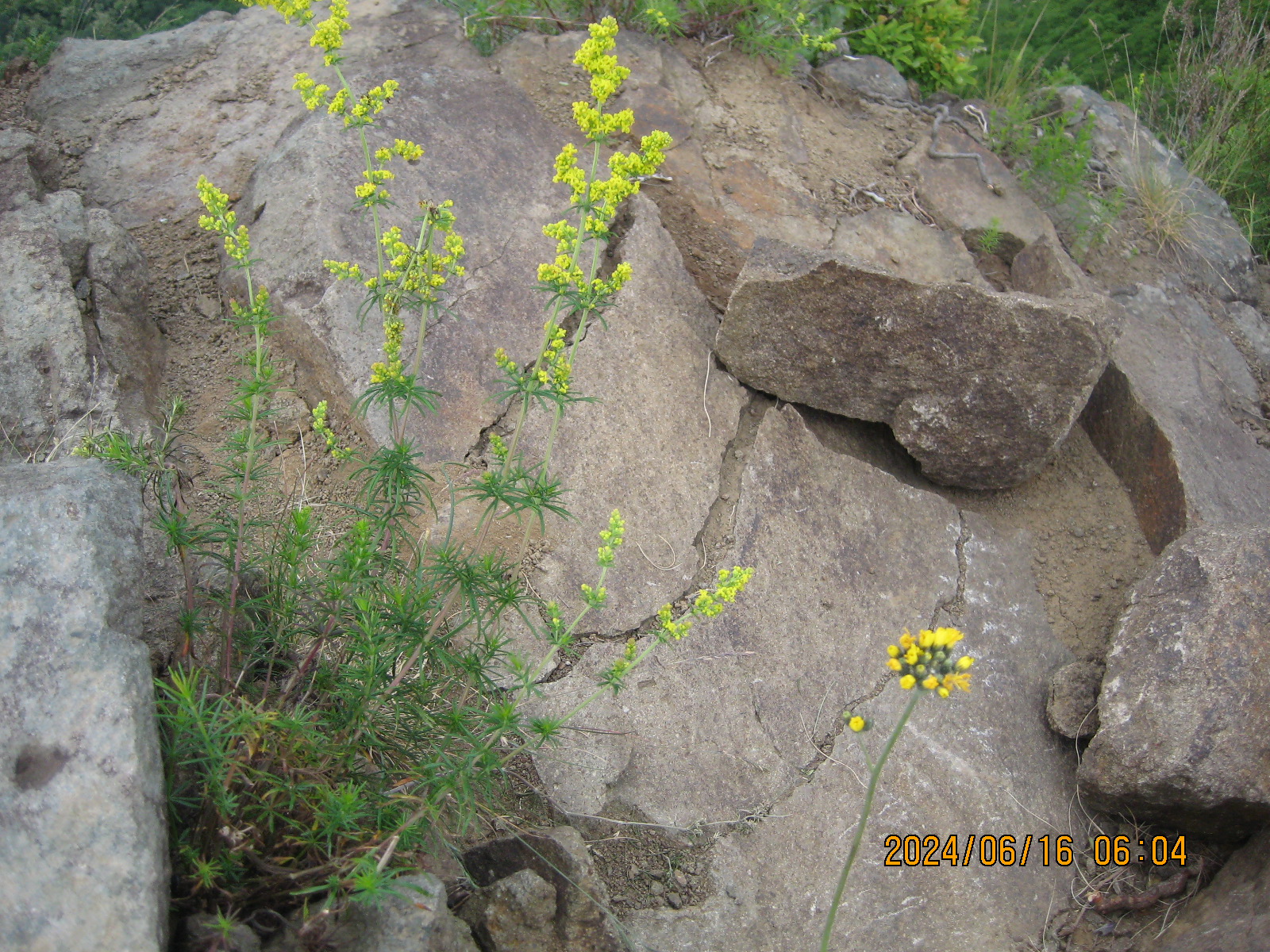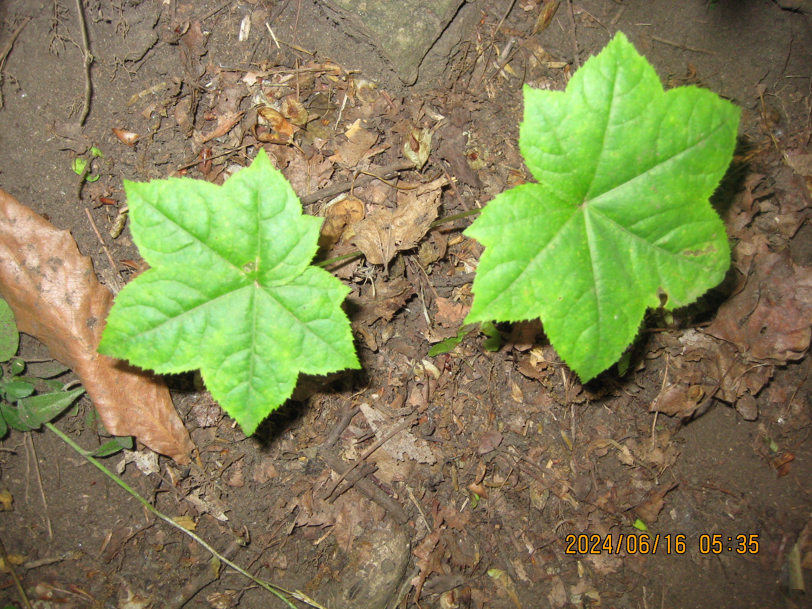八剣山 登山開始5時30分 登頂6時4分 下山6時25分。 今日の場合は9時出勤なので朝登山してきました。 熊ガンガンに赤いスズが付いていて、三合目合流点看板には可愛いのがぶら下がっていましたね。 地面からいきなり葉っぱも珍しかったので写真撮りました。