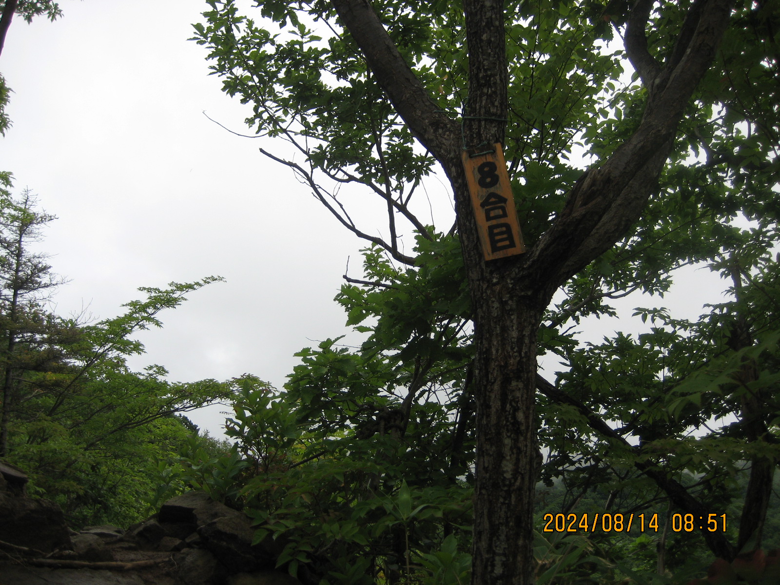 八剣山 登山開始8時23分 登頂8時58分 下山9時20分。 天気予報では雲のマークがびっしり、お山は小雨で、汗びっしょりの体に冷たい雨がショボショボ気持ち良かった。 こんなお天気ですから何方ともお会いしませんでしたね。 6合目では季節外れのタモキノコが黄色く目立っていました。