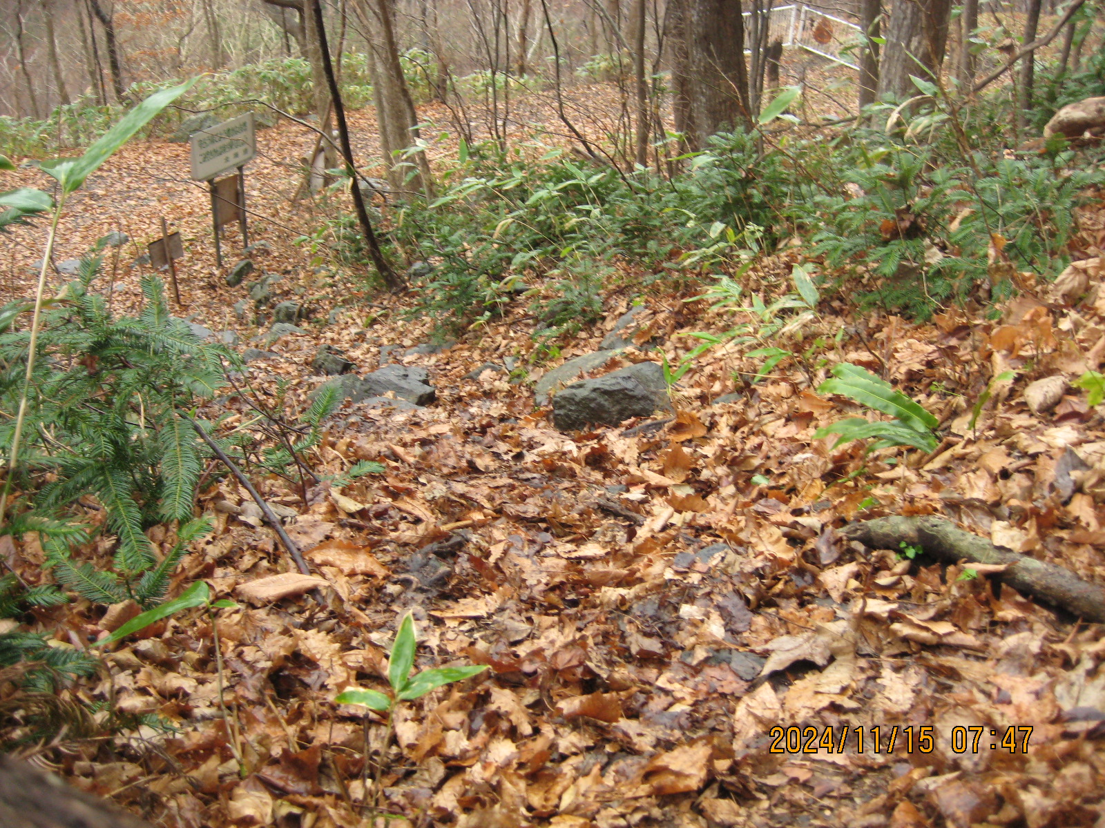 八剣山 登山開始7時40分 登頂8時23分 下山8時47分。 今日は、お・や・す・み なんで御座います。 お休みの日には晴れてもらわないとガッカリするんだよね。 防水赤シャツ着て傘さして防水手袋で完全武装してますよ。 だって、さっぶいからこうなっちゃいます。 こんな日には誰も登らないから鼻歌で寂しさを紛らわせながらボッチ登山を。