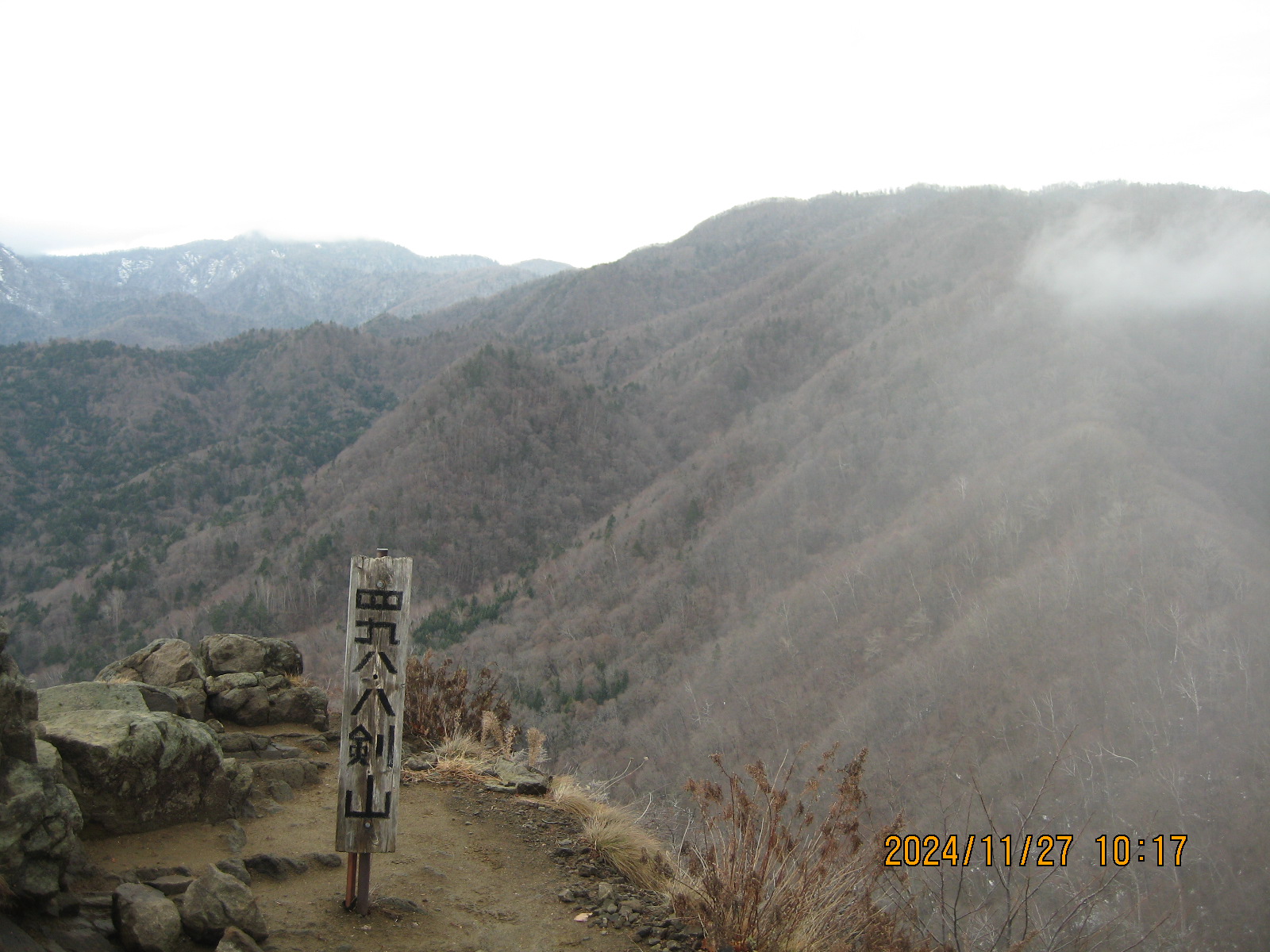 八剣山 登山開始9時34分 登頂10時17分 下山10時47分。 予報ではお天気悪そうだったので何方も登られていませんでした。 登山道の雪はぜーんぶ溶けて葉っぱと泥が混ざってネロネロでした。 尻もちは嫌なので慎重に下ってきましたよ。 写真の6合目上の登山道は雪で埋まってしまうのであの木の上を歩くんですよ。