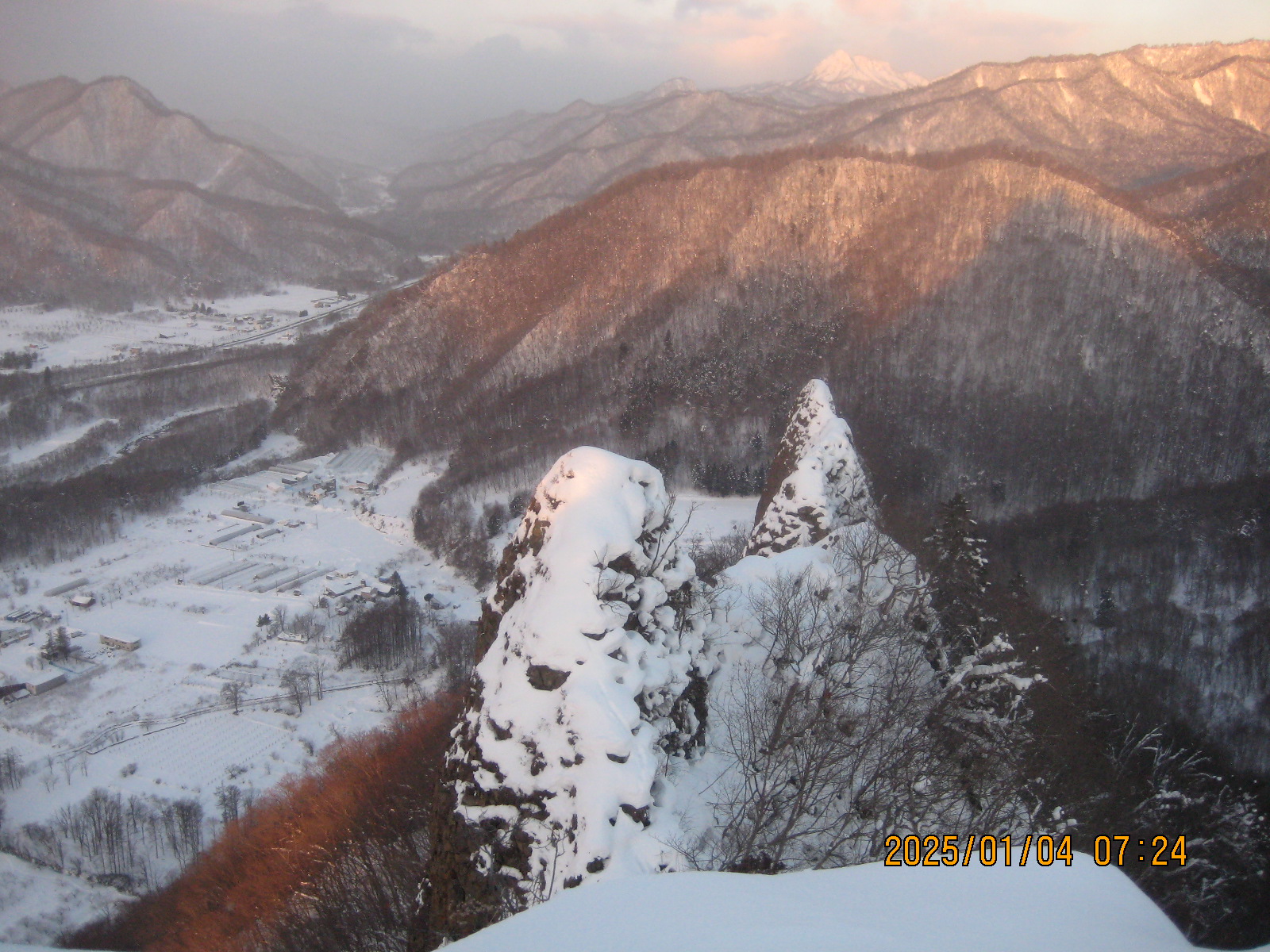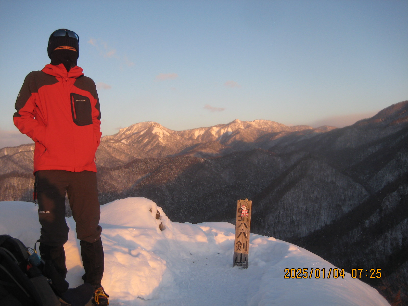 八剣山 登山開始6時55分 登頂7時25分 下山7時45分。 今朝は自宅の外壁に取り付けてある寒暖計は―18度でして覚悟して登りましたよ。 頂上に着いて寒暖計を見ると日の出と共に温まったみたいで―10度でした。 常連のNぼーさんが先着されていて新年のご挨拶。 という事で、んではこれから仕事に行ってきまーす。