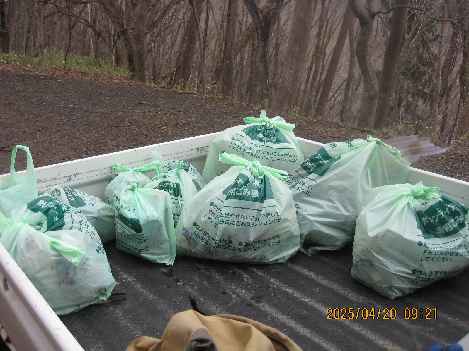 八剣山 登山開始9時23分 登頂10時 下山13時20分。 というか、今日の場合は萬年さんとぢゅんちゃんと三人でゴミ拾い。 駐車場から登山小屋までの350メートルに、ボランティア袋が10個程。 と、8合目の冬用ザイルを取り外して、ぢゅんちゃんが首にかけて下山。 ネギ採りも山中歩いて大漁。 ヨレヨレに疲れたのでこれから温泉に行って筋肉ほぐし。 充実した一日でした。