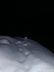 八剣山日誌 登山開始4時46分 登頂5時48分 下山6時16分。 今日は朝早くから用事が有るので真っ暗だけれど行ってきましたよ。 ヘッデン付けて、途中で6回もヨッコラショとおしりおろして。 というより、ゆるくなくてそうしないと登れないの。 雪は思っていたより少なくて新雪は20センチくらいかな。 駐車場は除雪完璧、5台は停まれますかね。