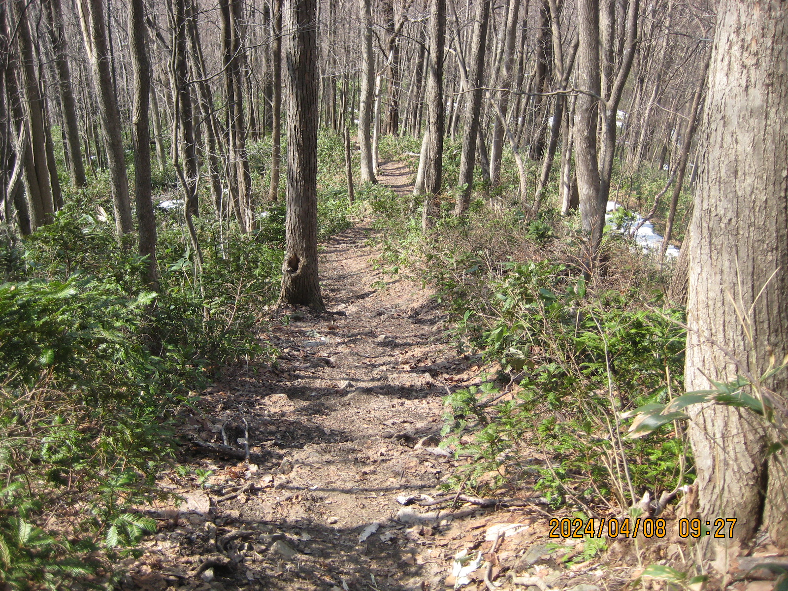 八剣山 登山開始9時15分 登頂10時 下山10時50分。 札幌は20度まで上がるとの事で頂上も結構暑かったです。 登山道はこの暖かさなので7合目までは夏靴で大丈夫です。 それから上はアイゼンなどが必要ですね。 7合目下の痛んだトラロープは危険なので取り外しました。