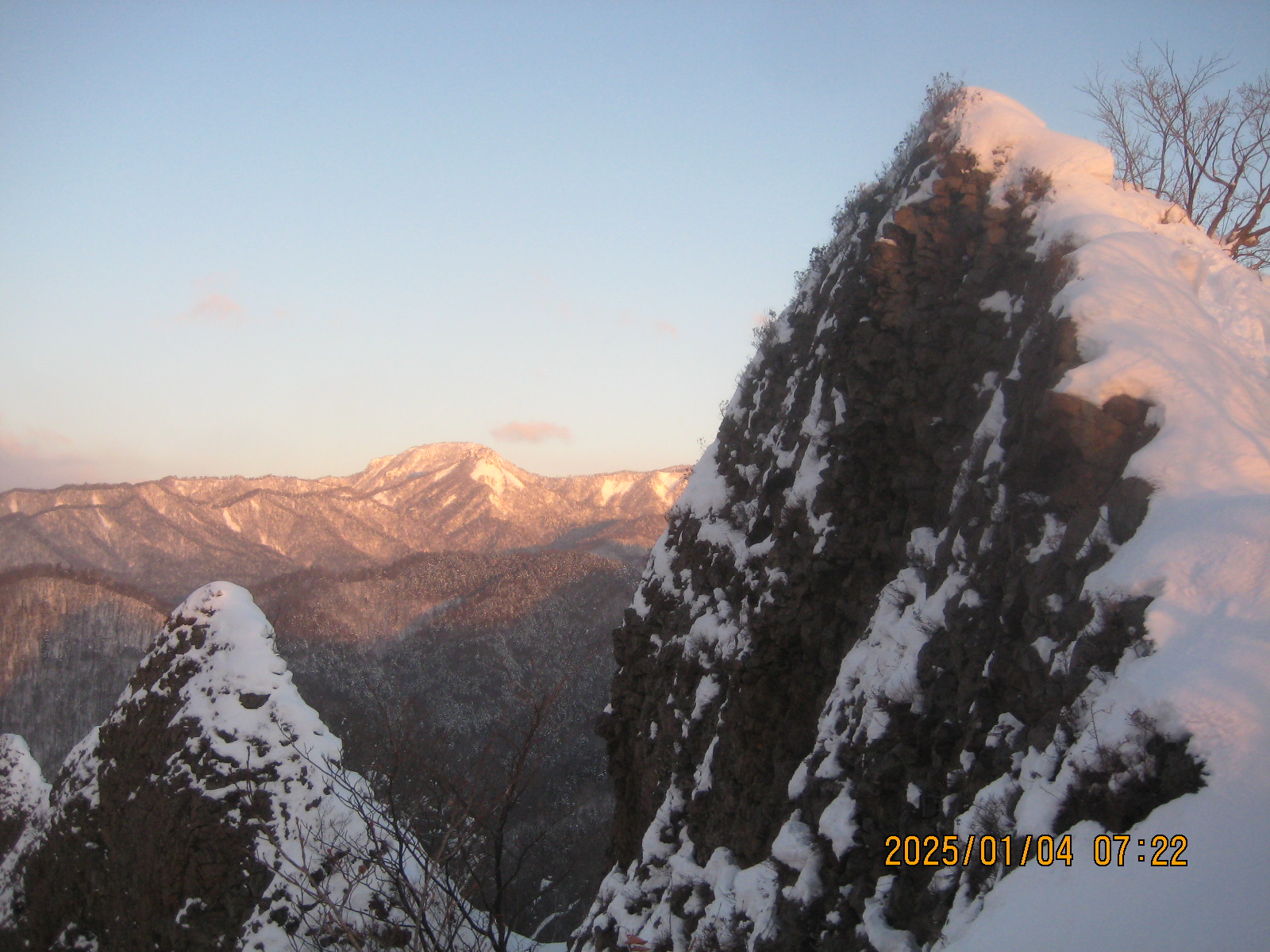 八剣山 登山開始6時55分 登頂7時25分 下山7時45分。 今朝は自宅の外壁に取り付けてある寒暖計は―18度でして覚悟して登りましたよ。 頂上に着いて寒暖計を見ると日の出と共に温まったみたいで―10度でした。 常連のNぼーさんが先着されていて新年のご挨拶。 という事で、んではこれから仕事に行ってきまーす。